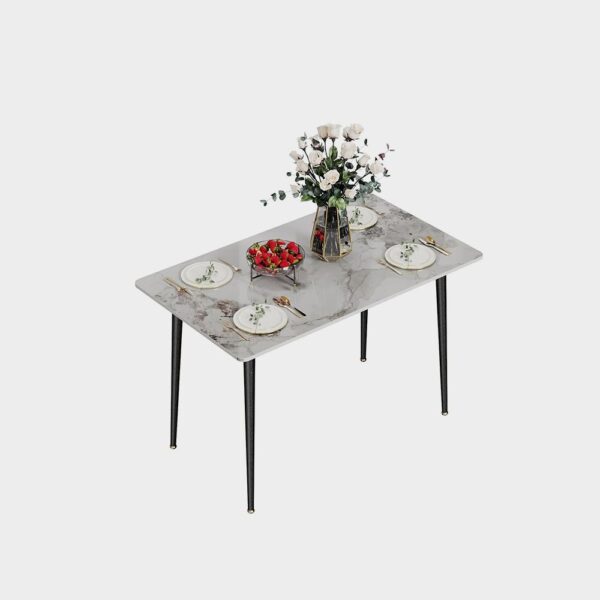 Kitchen Dining Table Rectangular Modern Sintered Stone Marble Effect Table Top with Tapered Metal LegsFurniture